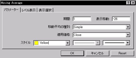 ローソク足の終値を26個前のロウソク足に記入した線です。